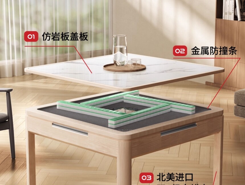 首页 >> 产品中心 >>宣和 >>实木 >> 宣和实木麻将机全自动家用低音麻将桌新中式家用电动机麻 XH850